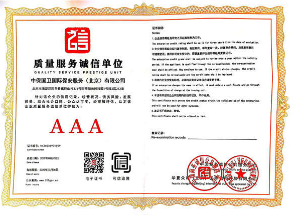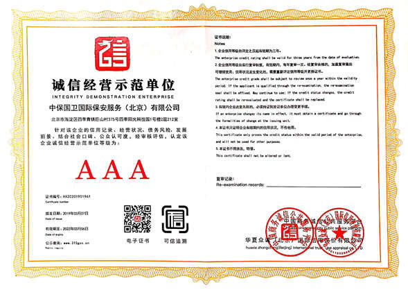 中保國(guó)衛(wèi)國(guó)際保安服務(wù)(北京)有限公司,屬中保國(guó)衛(wèi)集團(tuán)旗下子公司。能全方位的為大型客戶提供優(yōu)質(zhì)的安保、押運(yùn)服務(wù),是集人防和技防于一體的新型正規(guī)化綜合安保押運(yùn)服務(wù)企業(yè),提供人防、物防、技防、聯(lián)網(wǎng)報(bào)*、非武裝押運(yùn)等安防相關(guān)的一站式服務(wù)。 公司在國(guó)內(nèi)多省設(shè)立有分公司及分支機(jī)構(gòu),著重提升安全押運(yùn)、智能技術(shù)押運(yùn)及安全技術(shù)防范相關(guān)的服務(wù),業(yè)務(wù)范圍覆蓋全國(guó)一、二線城市、港澳地區(qū)以及海外地區(qū)。安保方面主要為政府機(jī)構(gòu)、金融機(jī)構(gòu)、企事業(yè)單位、醫(yī)療衛(wèi)生、高等院校、工業(yè)園區(qū)、大型商場(chǎng)、高檔住宅、智能商務(wù)樓、大型活動(dòng)提供門衛(wèi)、守護(hù)、巡邏、押運(yùn)(非武裝)、安全檢查、保安特勤、私人護(hù)衛(wèi)、消防中控、安全技術(shù)防范、遠(yuǎn)洋護(hù)航等全方位服務(wù),同時(shí)面向國(guó)際市場(chǎng),為中資企業(yè)在“一帶一路”沿線國(guó)家投資提供境外安保服務(wù)。 |